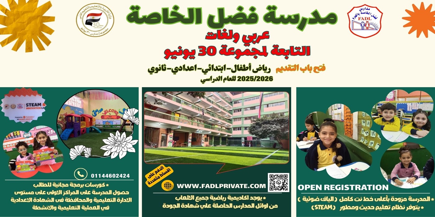 تعلن مدرسة فضل الخاصة عن بدء النادى الصيفى بالمدرسة للعام 2024/2023