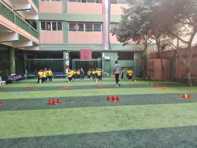 جزء من حصص التربية الرياضية داخل المدرسة، في أجواء من النشاط والحيوية